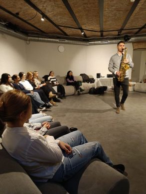 Elevii au fost introduși în universul jazz-ului, punând accent pe improvizație, ascultare activă și expresie autentică. Prin exerciții simple de ritm, sunet și cuvânt, participanții au fost încurajați să-și exprime gândurile și emoțiile în timp real. S-a explorat legătura dintre libertatea artistică și libertatea de exprimare în spațiul public. Au participat Alex Huțanu (Alex Jaxx), profesor la Liceul de Artă ‘’Octav Băncilă’’ și muzician care a susținut susține demonstrații live și a facilitat activități participative de improvizație sonoră și Anca Zota, specialist în comunicare, fost jurnalist, coordonator de proiecte Erasmus, cu experiență de peste 20 de ani în lucrul cu tinerii. Ea a tradus conceptele artistice în exerciții de decodare a mesajelor, exprimare verbală, discurs liber și storytelling personal.