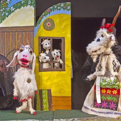 Pentru Capra cu trei iezi, joi, 29 august, ora 17.30, regizorul Ion Ciubotaru a recurs la pictura naivă a lui Gheorghe Ciobanu, din ale cărui lucrări sunt reproduse secvențe în componenta plastică a spectacolului. Scenograful Mihai Pastramagiu a redat în decor frânturi din viața satului tradițional așa cum apar în lucrările artistului de la Bălțați, iar costumele păpușilor preiau și ele prin stilizare elemente de acest gen. Actrițele Ioana Iordache, Carmen Mihalache, Ileana Ocneanu, Mariana Teleman și Elena Zmuncilă animă păpușile care au călătorit nu doar în poveste, ci și prin lume, în festivaluri din Portugalia, Spania, Italia, Marea Britanie, până în îndepărtata Chină, atestând valoarea creației.