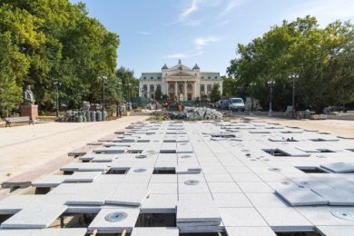 Primăria Municipiului Iași a anunțat că lucrările la parcul din fața Teatrului Național „Vasile Alecsandri” sunt executate în proporție de circa 90%.