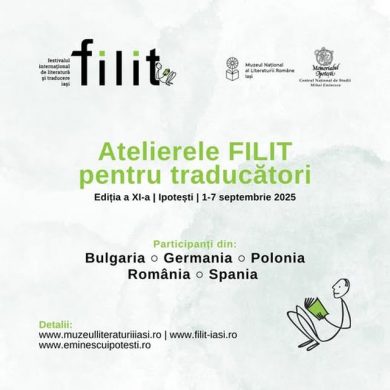 Începând cu 1 septembrie și până pe 7 septembrie are loc cea de-a XI-a ediție a Atelierelor FILIT pentru traducători, organizate de MNLR Iaşi în colaborare cu Memorialul Ipoteşti – Centrul Naţional de Studii 𝑀𝑖ℎ𝑎𝑖 𝐸𝑚𝑖𝑛𝑒𝑠𝑐𝑢.