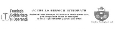 Fundația Solidaritate și Speranță Iași anunță lansarea proiectului social Acces la servicii integrate. Proiectul este finanțat de Primăria Municipiului Iași, prin Programul anual de finanțare în baza Legii 350/2005 pentru pentru anul 2025.