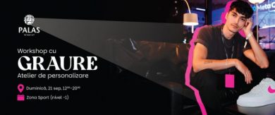 Veste bună pentru pasionații de creație urbană! Artistul GRAURE îți personalizează sneakerșii cu elemente cool și design inspirat de cele mai noi trenduri. Tot ce trebuie să faci este să achiziționezi o pereche de sneakersi albi sau deschiși la culoare din magazinele sport din Palas și să vii duminică, între orele 12.00 și 20.00, în zona Sport (nivel -1). Dacă te afli printre primii 30 de participanți, vei avea perechea ta unică, personalizată de GRAURE. Stai fără griji, pentru că mai ai o șansă, odată cu workshopul creativ unde, sub îndrumarea artistului, îți personalizezi tricoul, șapca sau borseta (achiziționate tot din aceleași magazine, însoțite de bonul fiscal)!