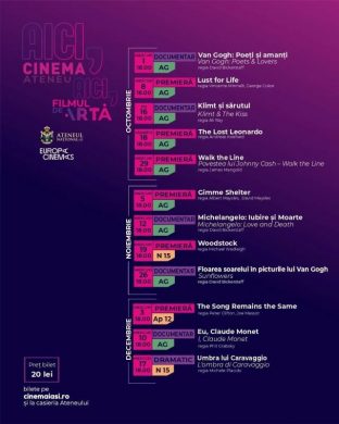 Andrei Giurgia, coordonatorul Cinema Ateneu: „Ne bucurăm să continuăm proiectul nostru cultural dedicat artei și cinematografiei. Aici, Filmul de Artă va aduce atât documentare de artă, cât și producții biografice care surprind viața și creațiile unor artiști emblematici. Invităm publicul să descopere, aproape în fiecare miercuri, povești vizuale de excepție”.