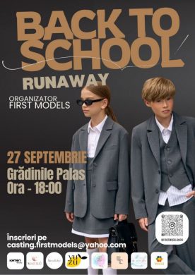 Tot în acest weekend, Fashion Show Kids continuă distracția de „Back to school” cu propuneri de ținute create de designeri români. Sâmbătă, 27 septembrie, de la ora 18.00, grădina Palas devine podium pentru adolescenții de la First Moldels și First Models Kids, care îți vor prezenta sugestii vestimentare pentru școală.